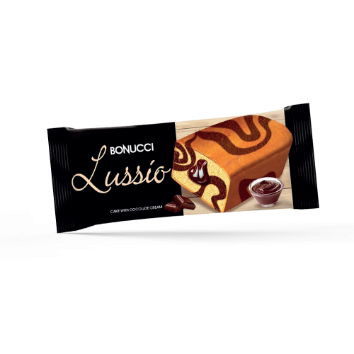 كيك رخامي من بونوتشي (Bonucci Lussio) مع صلصة الشوكولاتة. العلامة التجارية: Bonucci Lussio. المنتج: كيك رخامي محشو بصلصة الشوكولاتة. التغليف: عبوة كرتونية كبيرة تحتوي على قطع مغلفة بشكل فردي. النوع: كيك إسفنجي بنكهتي الفانيليا والشوكولاتة ممزوجتين معًا.