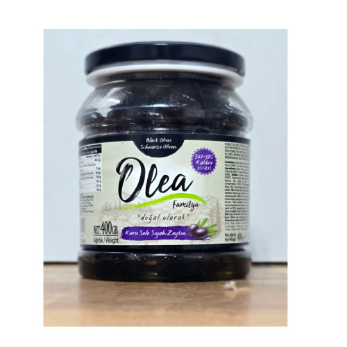 زيتون أسود مجفف من نوع "Olea Familya".الوزن الصافي: 400 جرام. النوع: زيتون أسود مجفف على الطريقة التركية التقليدية. المواصفات: نباتي، حلال، وصديق للنباتيين (فيجن).
